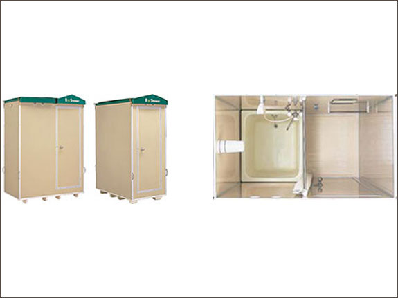 | トイレ(簡易水洗式)は少量の水と薬品が流れ、汚れ・臭いを軽減します。 トイレ(水洗式)は通常のトイレを同じですが、給排水の配管工事が必要です。 フロハウスはガス給湯機が付いています。給排水・ガスの配管が必要です。 また、浴槽を外すことでシャワールームとしての使用も可能です。 |